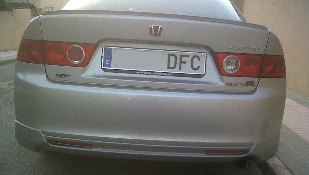 Barata no era, ende luego,..... pero mejor..... se me adelantó mi buen amigo S2000Gr, que se trajo dos pegatas HFP en negro para la trasera de su S2K y para mi Accord. Dado que en la derecha ya llevo la chapa original con el emblema Euro-R, consideré mejor no poner más chapitas, y dejarlo así, con la pegata en negro de HFP y a la izquierda y a derecha la de Euro-R.... (sí, ya sé que no es un EuroR, pero me gusta)..... XD