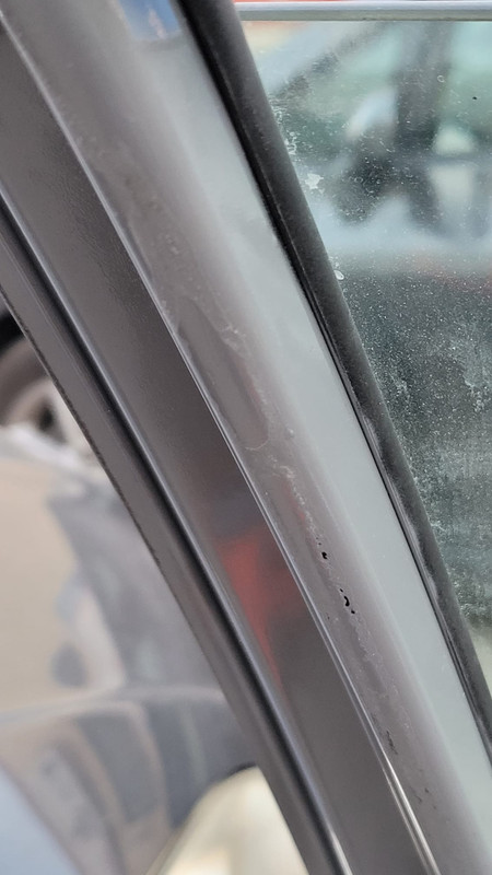 Después de investigar, vimos que la puerta por alguna razón no estaba seca del todo, y procedimos a pintarla con spray negro. Una vez pintadas y vuelta a pasar dos semanas volvió a quedarse pegado y sobre todo tenía la particularidad que había justo un punto de la puerta que tenía una pequeña grasa y ahí directamente te llenaba la mano de negro sólo con rozarlo.